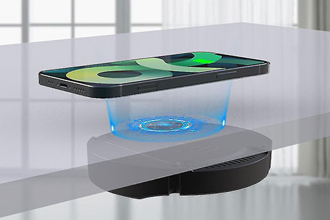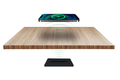 Long-distance wireless chargers seamlessly installed under wood, marble, or glass (up to 30mm)