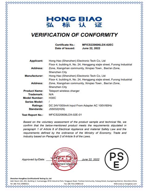 H30C PSE Certificate